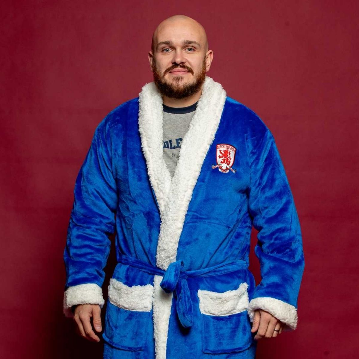 Wrap yourself in warmth with the MFC Royal Blue Sherpa Fleece Dressing Gown.